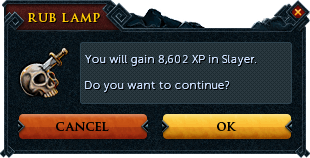 The confirmation message displayed when rubbing a skill-specific XP lamp.