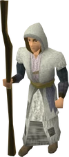 The mercenary mage is an enemy that the player attempts to kill during the quest While Guthix Sleeps, specifically during the battle in Mcgrubor's Wood. He appears alongside several mercenary axemen who are trying to slay followers of Armadyl behind McGrubor's Wood. However, the mage manages to teleport away before the player kills him, similar to how the shady strangers and suspicious outsiders in Draynor escape from battle. Currently, the mage's whereabouts are unknown. Afterwards, the player talks to one of the wounded Guardians of Armadyl and is later introduced to Idria.