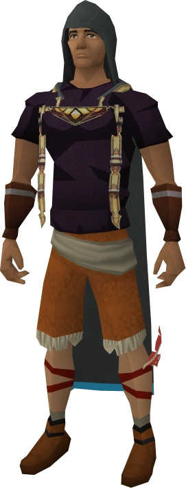 The hood is of a solid greyish-brown, regardless of the number of skills in which the player has attained skill mastery. This is in contrast to the cape which receives a light blue trim on the sides the moment players reach level 99 in a different skill.