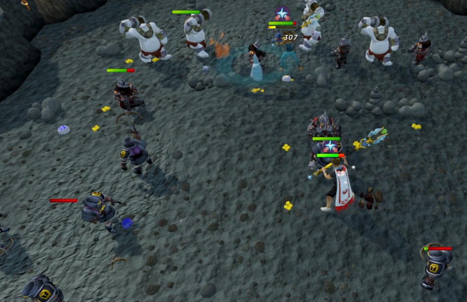 Try to hit the dwarfs as fast as you can; the nearby Black Guard crossbowdwarfs left alive will easily decimate the chaos dwarves almost immediately. Due to attacking a chaos dwarf, nearby chaos dwarfs will start to attack you. Although they do not hit very accurately, the damage will quickly stack up. To avoid this, you should have prayer restoring neck-wear like the demon horn necklace, a bonecrusher, and Soul Split to recover from your battle wounds. If you do not, you may want to use protection prayers, and occasionally use Ice Asylum or Elite Enhanced Excalibur.