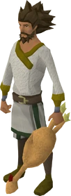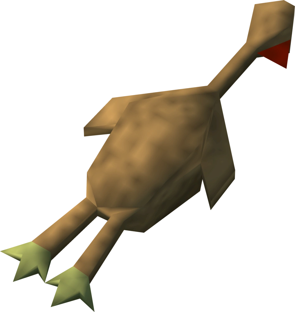 The off-hand rubber chicken is the off-hand variant of the 2005 Easter event reward, the rubber chicken. It is dropped on members worlds by chickens, but only ones that respawned using an animation where they fall from the sky and say "I have returned!". It can also be obtained by players who do not have the original rubber chicken.