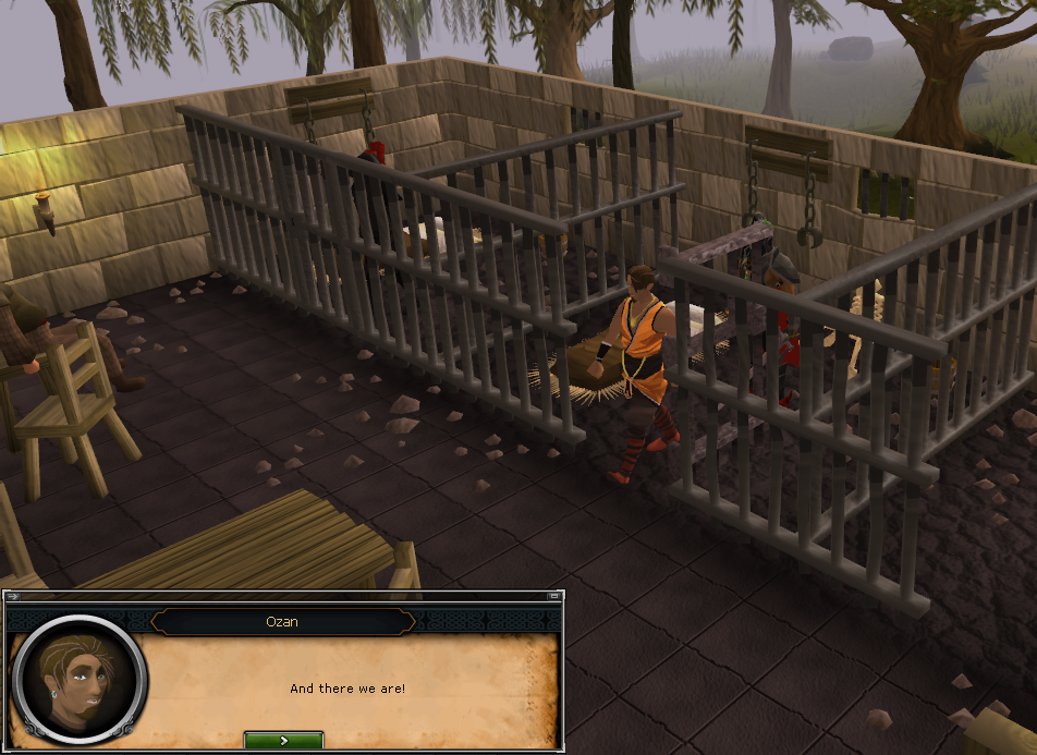 To prevent a war Ozan and the adventurer broke into the room where the Kharid-ib was hidden and tried to find the answer to the puzzle made to protect it. But they were caught by Osman, who brought them to the Emir. Ozan summarised what happened so far to Osman and the Emir. Ozan tried to convince the dying Emir to give up the Kharid-ib, but the Emir once again refused and then died. Ozan, feeling guilty about the death of the Emir, decided he needed some fresh air, so he left the room. Osman informed the adventurer Ozan is once again welcome in Al Kharid.