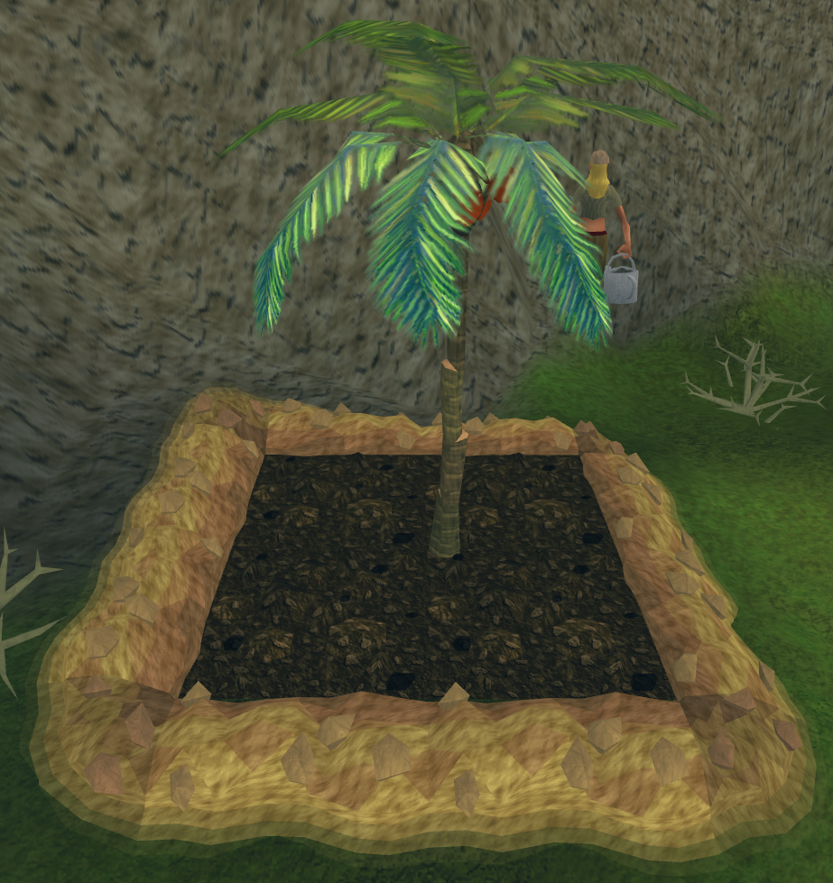 Palm tree seeds are the highest level fruit tree patch seeds that can be planted by the player. At 68 Farming, a palm tree seed can be planted in a plant pot to make a palm seedling, which grows into a palm sapling; the sapling can be planted in a fruit tree patch to be grown into a palm tree. Palm trees, when fully grown, bear 6 coconuts.