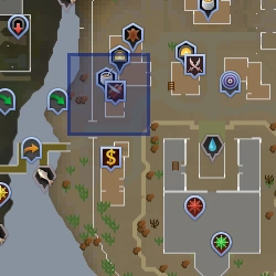Quiet desert town with an oven next to the bank. | The bank and oven are found at the south end of the town, close together, so minimum running. Players can angle the camera to be in sight of both for easy banking. | N/A |