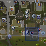 The Phoenix Gang has a hideout in the basement of a ruin in southern Varrock, and a weapons storage room on the first floor of a small building in the south-east sector of the town.
