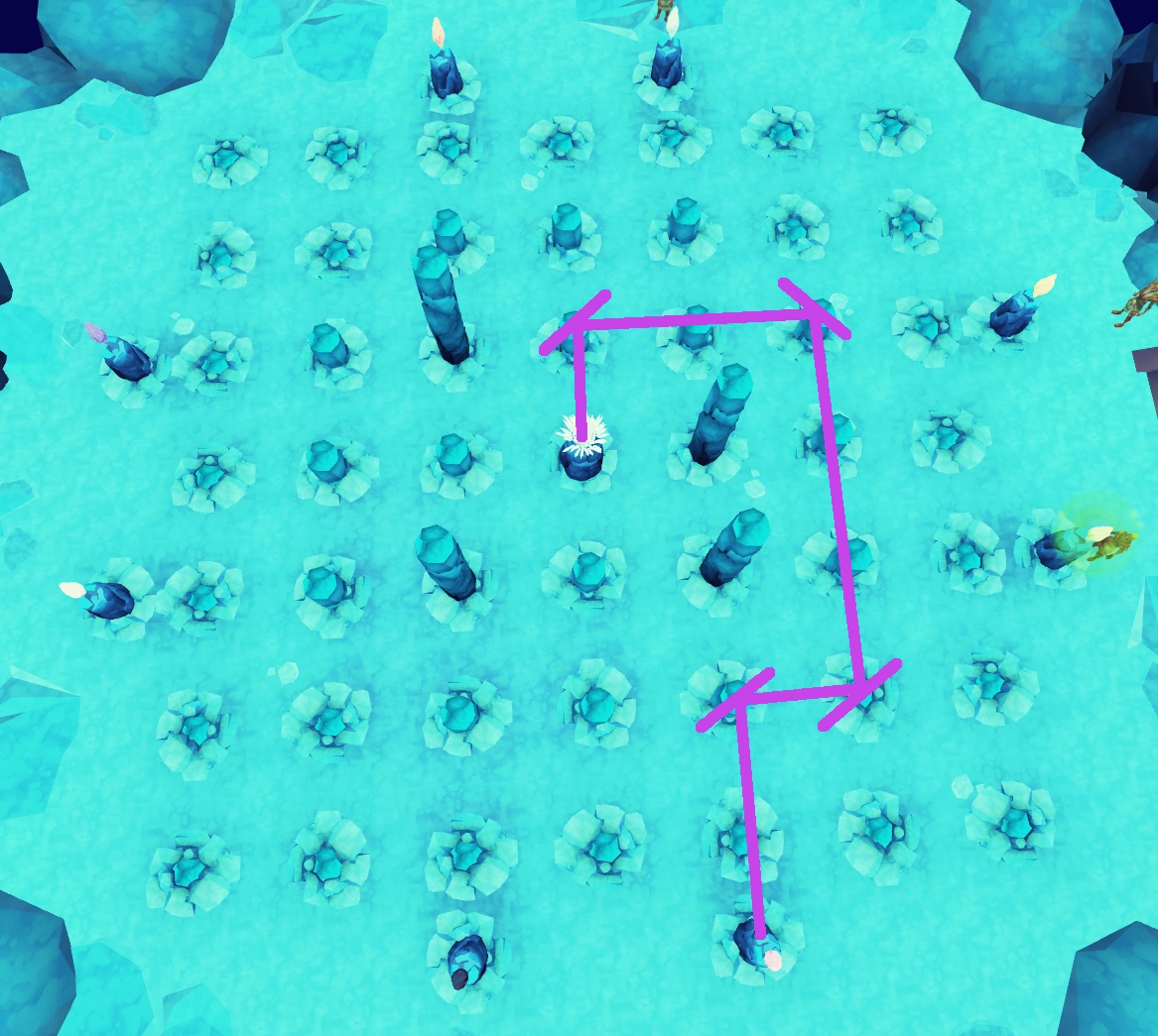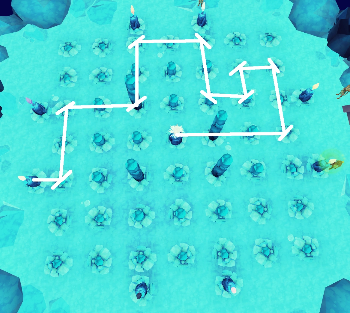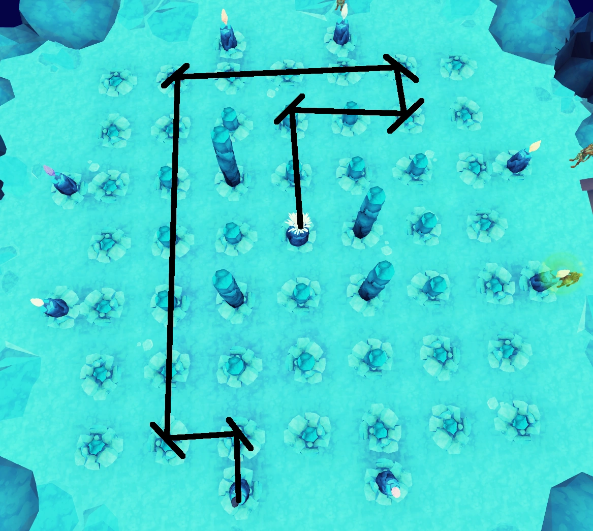 | First plinth to the west | South, into the Seal of Seren and the Dark Lord |