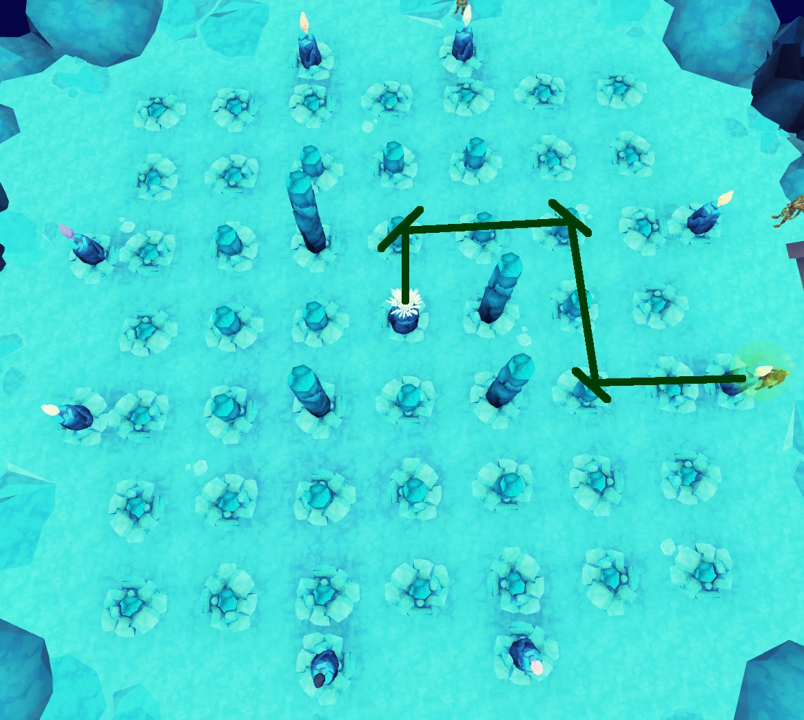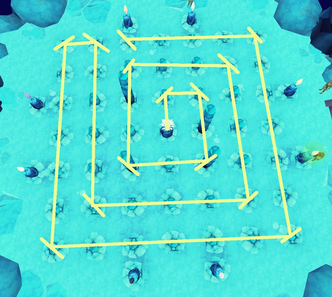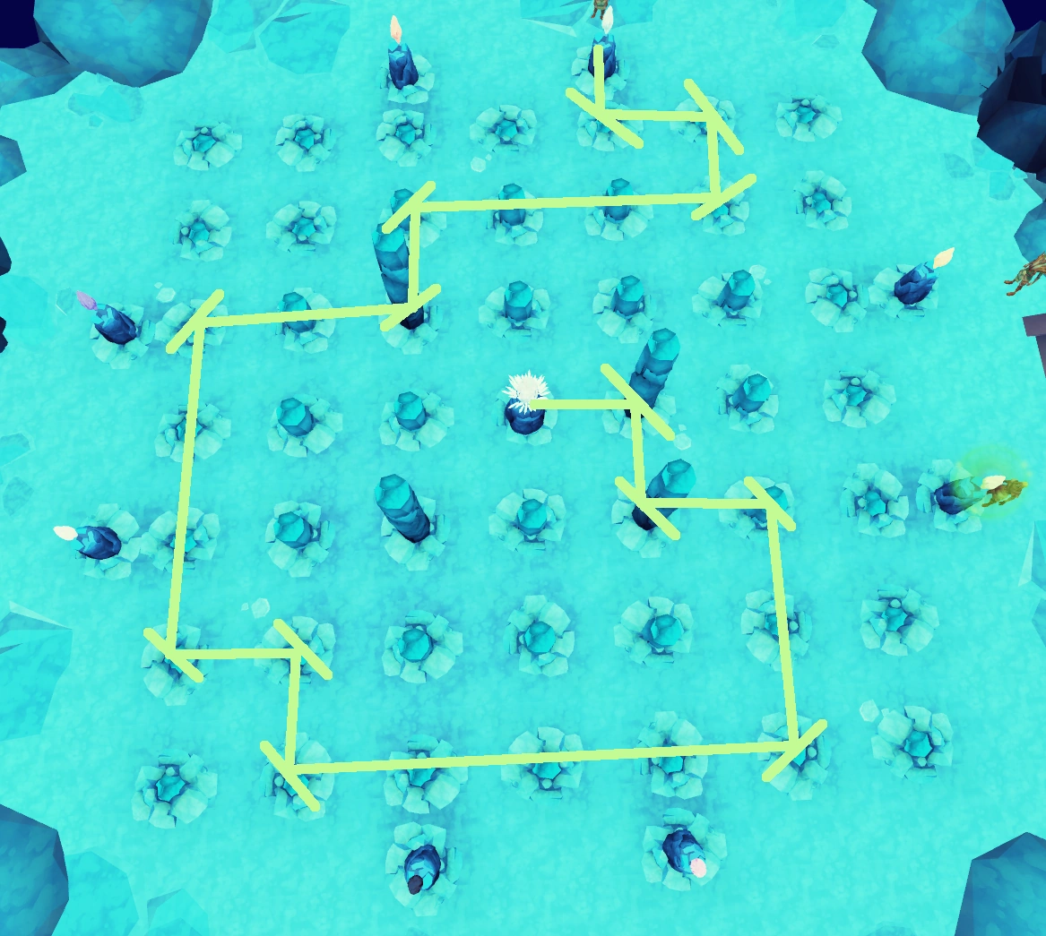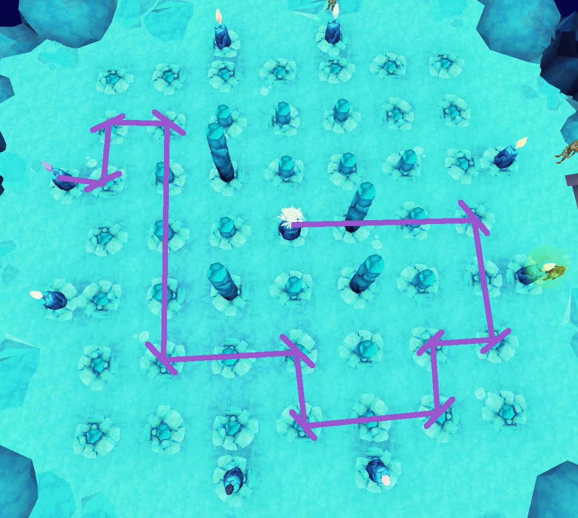 | First plinth to the west | South, into the Seal of Seren and the Dark Lord |
