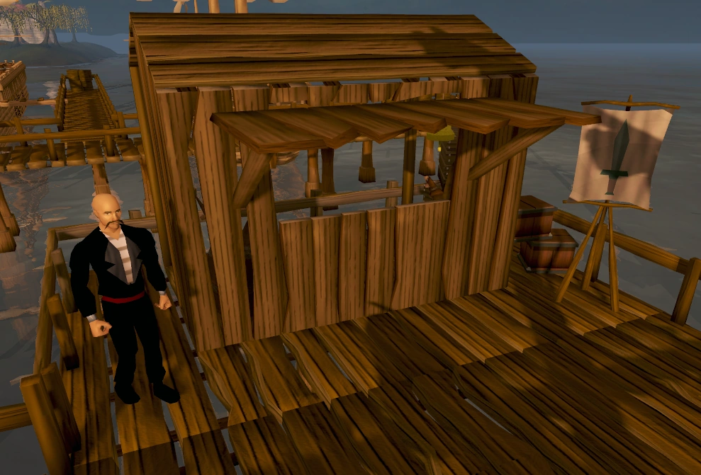 Players can start the Fishing Trawler minigame here by talking to Murphy. He also gives players the sextant required to complete Treasure Trails and helps players go diving, during and after the Pirate Pete subquest in Recipe for Disaster.