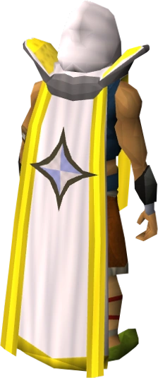 The Prayer cape (t) is the Cape of Accomplishment for the Prayer skill. It can be purchased for 99,000 coins alongside the Prayer hood from Brother Jered at the Edgeville Monastery or Elen Anterth in Prifddinas by players who have achieved level 99 Prayer. Prayer capes are white in colour, and have a yellow-gold trim if the player has more than one level 99 skill. The "operate cape" boost will have no effect if the player's prayer is not full when activated. The boost is also given as soon as the cape is worn.
