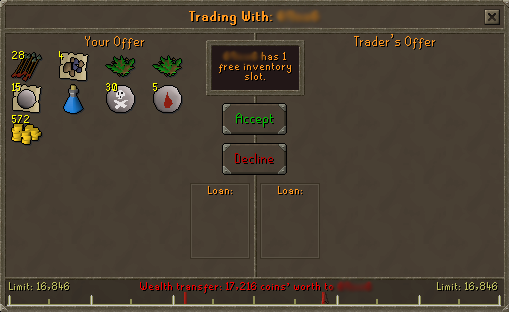 To start a price check, most players would repeatedly spam "Pc", commonly at a bank or the Grand Exchange, but players would also spam it at other places and wait for someone to trade with the player. When offered a trade, the player will put his/her items into the trade window; by doing this, the player may check the market value of items at the bottom of the trade window. After this price checking method is complete, the trade is declined, often annoying players, and therefore, became a common topic on the Official RuneScape forums.