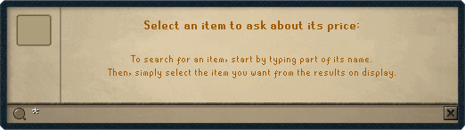 Players can also utilise the price checker to lookup the price of any item available on the Grand Exchange, by clicking on the flashing yellow box at the bottom-left corner of the interface.