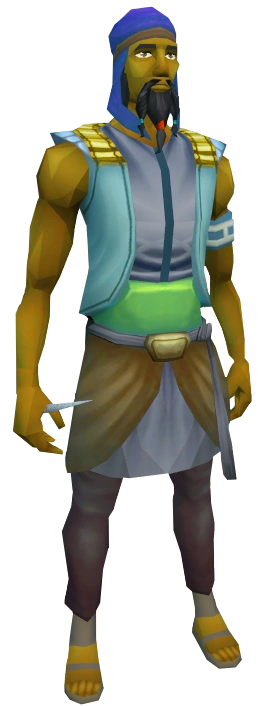 Raetul is a merchant found in Sophanem. He runs a store, which can only be accessed after several pages of dialogue, called Raetul and Co's Cloth Store. He stocks items such as desert clothing, silk, and crafting tools. In the Icthlarin's Little Helper quest, players purchase linen from him for 30 coins.