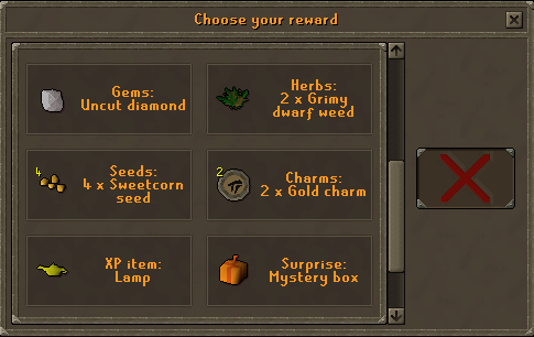 - If you choose a Lamp as your reward, the discontinued random event Genie pops up to give you your lamp.