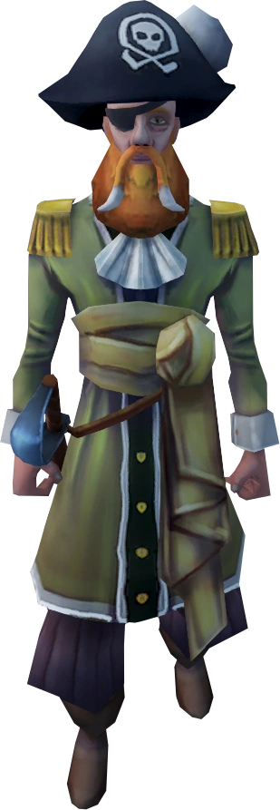 Redbeard Frank is a pirate bosun currently docked in the Asgarnian port-town of Port Sarim or at the end of the most north-eastern pier in Port Sarim. Redbeard was once the first-mate of One-Eyed Hector, a famous pirate general present at the Battle of the Archipelago. Since then, he has risen to the rank of captain, and has gained an insatiable thirst for Karamjan rum.