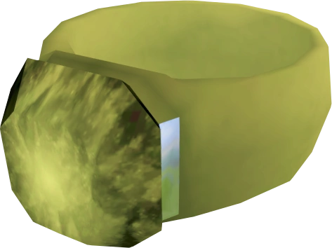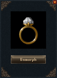 A ring of stone is a ring obtainable as a drop from TzHaar and TokHaar. When worn, the ring transforms the player into a lump of rock. The wearer may chat while transformed, but any attempt to move will automatically unmorph the player. The player will also be automatically unmorphed if attacked by an NPC or another player. Similar to the Easter ring, the ring of stone cannot actually be seen equipped in the ring slot as the worn inventory interface will be unavailable, and a window with a single "Unmorph" button will replace it. When transformed by the ring of stone, the player's white dot will still be visible on the minimap, and if right-clicked by another player all normal options are still available. It does, however, pause the poison effect for as long as the player is morphed.