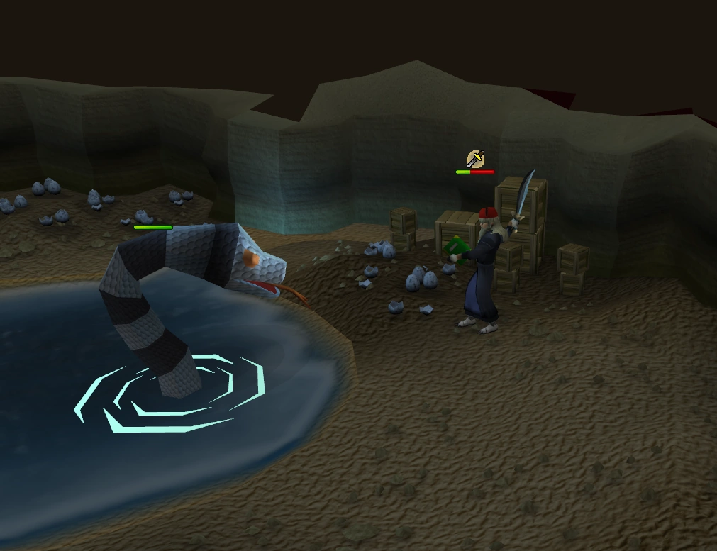 With a Defence level of around 50 and level-appropriate equipment, the fight should not be a challenge. The sea snake fights with melee up close and ranged from a distance, and the appropriate protection prayers are recommended. The snake will poison you if you are hit successfully, so take a sip from an antipoison potion either before entering her chamber or as soon as she poisons you.
