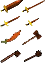 - Warrior (3 Attack, 3 Strength, 3 Defence, 12 Hitpoints) - Started out with a bronze short sword and wooden shield.