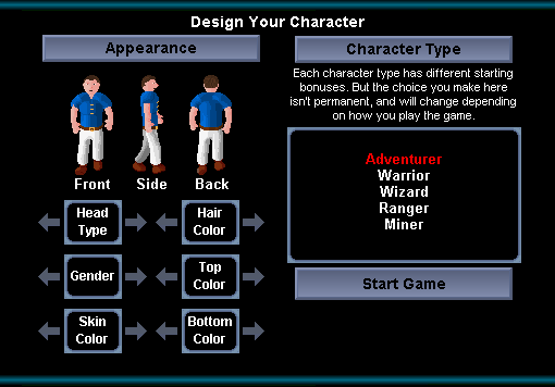 Depending on the class chosen, new players would start with a higher level in the appropriate skill at a compensation of lower skill levels in other areas. For example - a miner would start with level 5 mining, but they would also start with 9 Hitpoints.