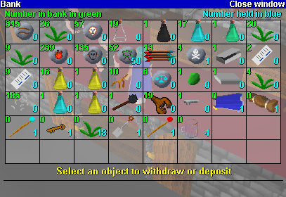 The bank in RuneScape Classic was much more difficult to use. For example, players could only withdraw or deposit limited amounts of items at a time, so trading large amounts of items was very time-consuming, however, Jagex updated Classic and added a deposit/withdraw "X" option. Also, since only one player could talk to an NPC at any given time, using the bank in crowded trading areas was very tricky and was very time consuming.