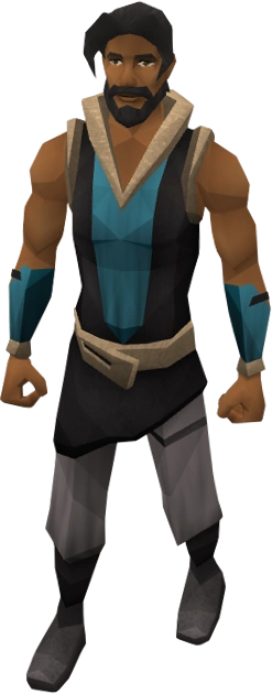 - He seems to be wearing a Wolf-fur vest and Summoner buckskins available from Thessalia's Makeovers, but with a unique colour scheme.