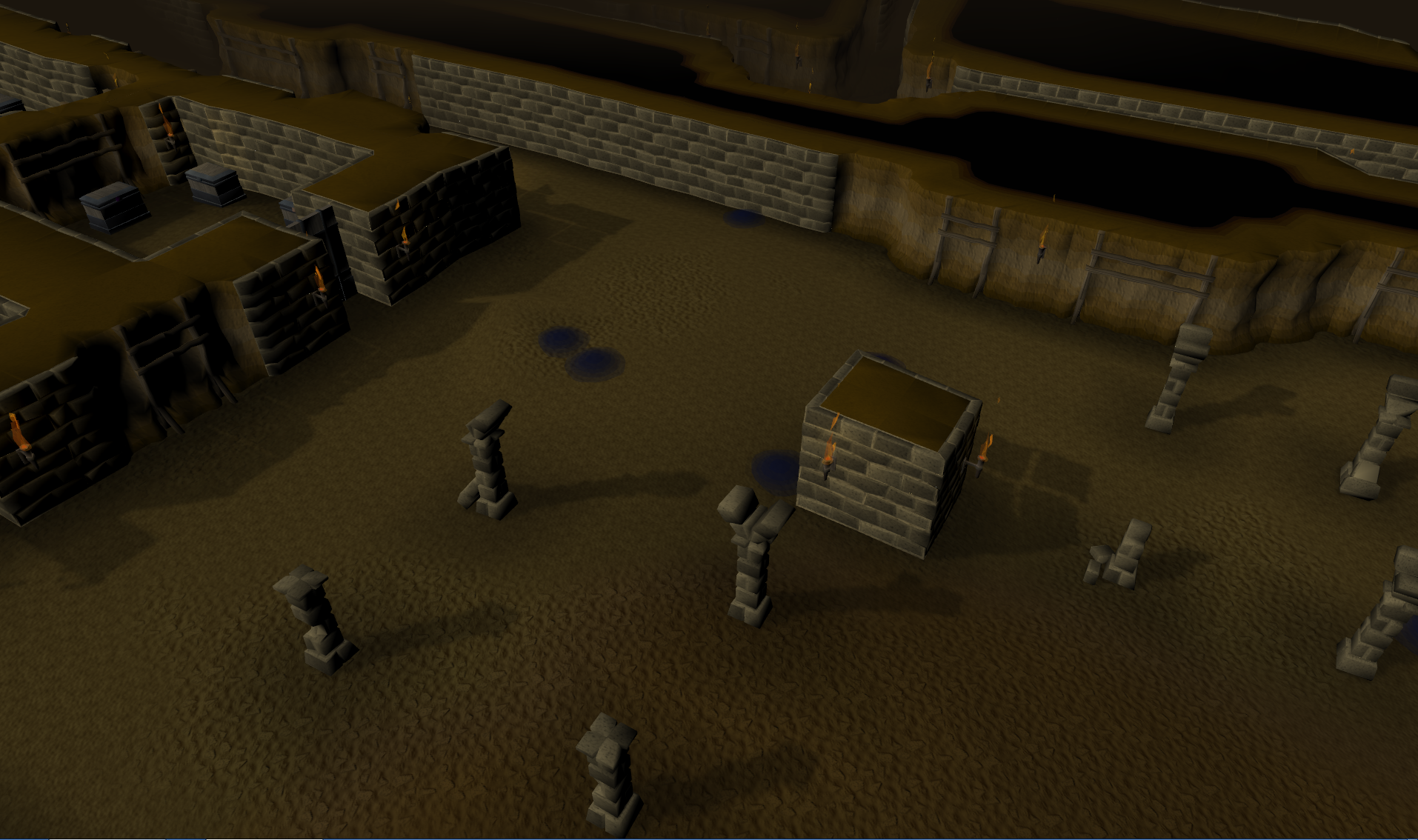 The Shade Catacombs are found under Mort'ton as part of the Shades of Mort'ton minigame and is a complex labyrinth. The entrance is to the north of Mort'ton (directly west of the Temple of Mort'ton) and is displayed on the overview map. To access it you need to have completed Shades of Mort'ton and have a Shade key of any type. In the catacombs, there are various shades and chests in which the rewards can be found. To get a bronze shade key, kill a Loar shade in Mort'ton, sanctify some Olive oil at the repaired temple to make Sacred oil, then use the sacred oil on any log, making a pyre logs. Use the pyre log on one of the four pyre slabs in one of the seven shade burning areas of Mort'ton, identified by grey diamonds on the minimap. Then use the shade remains on the pyre logs, then click on the pyre again to light it. You may need to burn more than one, as sometimes burning a shade produces coins instead of a key. The key or coins will appear on the stand at the end of the pyre.