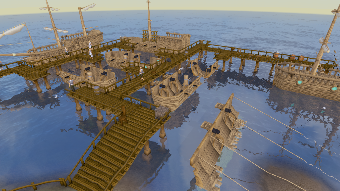 The Shipyard is a ship-building facility on the east shore of Karamja and south-east of the Karamja lodestone, built under the discreet supervision of Glough to raise a navy capable of attacking the human population of Gielinor. It is first visited by players completing The Grand Tree, and subsequently plays a role in Monkey Madness. Entering the Yard requires the player to speak the password (Ka, Lu, Min) which is obtained during The Grand Tree quest.