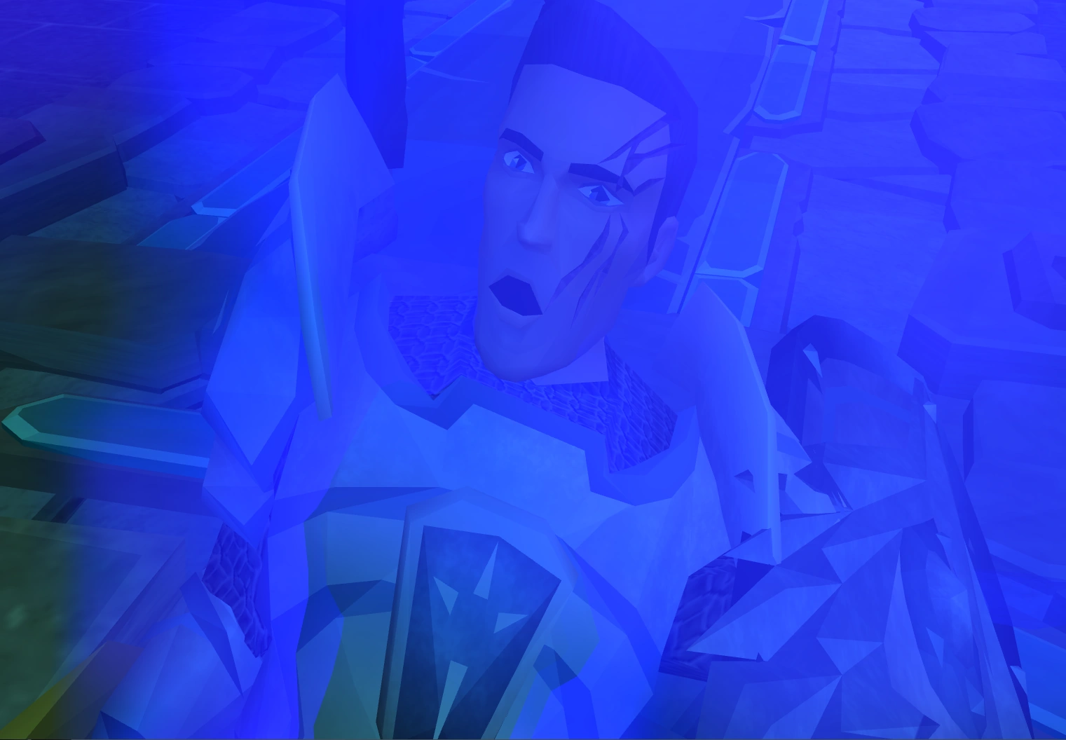 The duo were teleported to an ancient Saradominist tomb beneath the Frozen Wastes, where they found a trio of Black Knights harassing a girl locked in a suspended cage. After defeating the Kinshra knights, they unlocked the cage and freed the damsel, who revealed herself to be Dawn, ostensibly a sister from the Citharede Abbey. She claimed to have been captured by the Kinshra along with other Saradominists on her pilgrimage to the Edgeville Monastery for use in releasing the weapon, as voluntarily given virtous blood was needed. They agreed to leave Dawn in the Zamorakian camp while they would explore further. The adventurer also found a handwritten message from the real Dulcin warning the late knights that two Temple Knight infiltrants were on their way.
