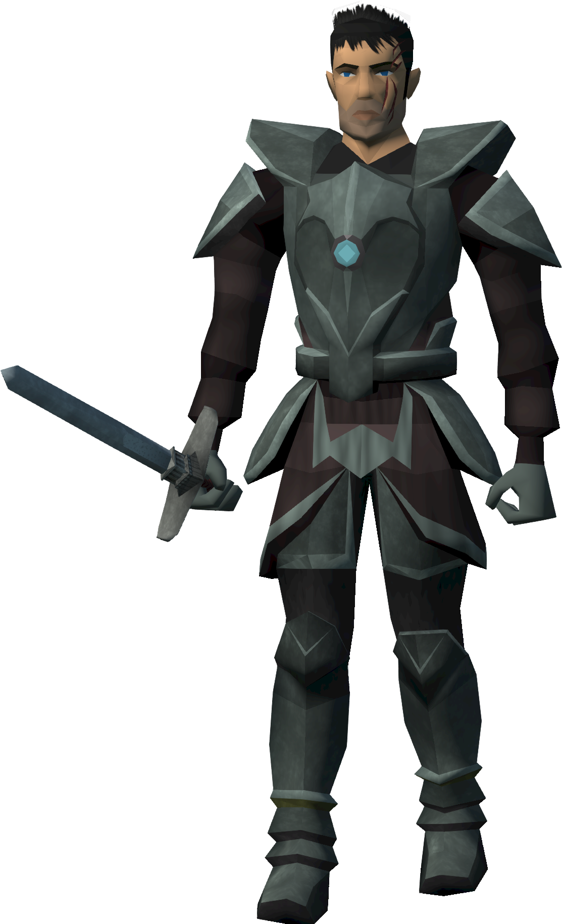 Sir Owen was born in Falador some thirty years ago, as son of Stario and Altra Sonde, minor Faladian nobles. In his youth, his mother was captured by a Kinshra raiding party. He attempted in vain to protect her, receiving his distinctive facial scar in the process. Stario, who was in court at the time, swiftly returned, only to find his wife and the Kinshra gone. Sir Owen wanted his father to blame him, but he only responded with grief, ending their good relationship. This incident inspired him to join the White Knights. He became devoutly Saradominist, believing in the god's principles of order and fighting for the innocents in his name.