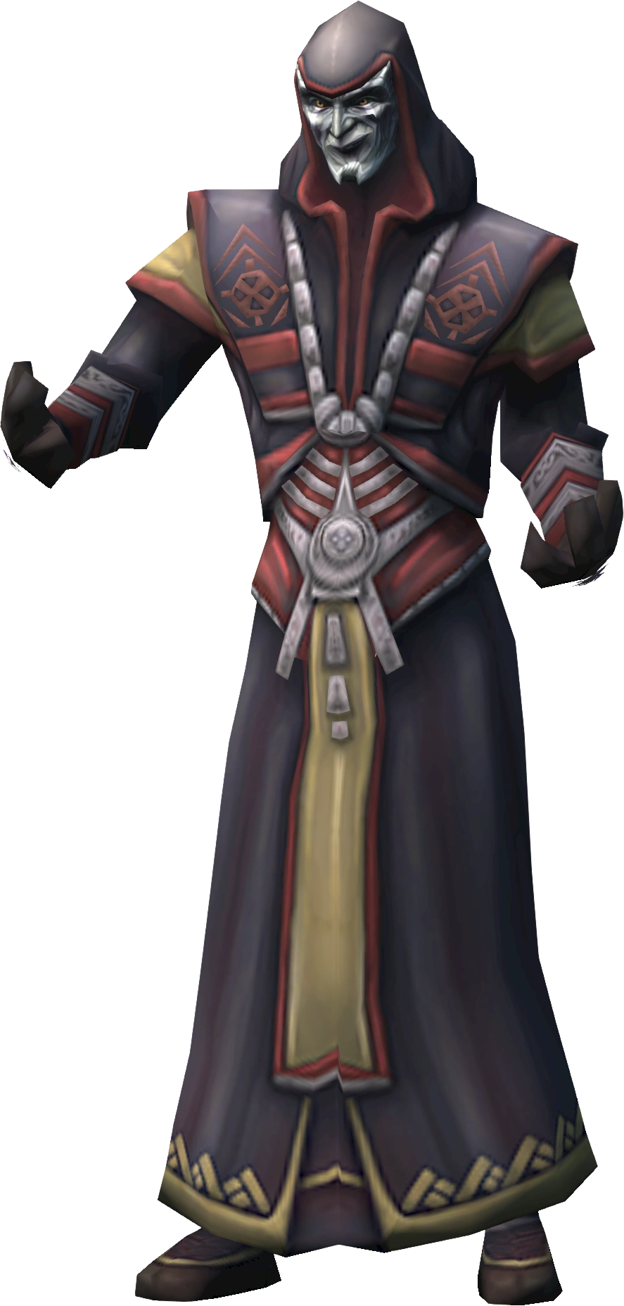 Sliske was devious and manipulative and whatever he does, it was always for the good of Zaros or himself.[4] Whoever of the two benefits, Sliske chose the path he deemed the most 'fun', regardless of others' opinions. For example, he took the effort of having Saradominists release Nex (a Zarosian general powerful enough to dwarf the other generals inside the God Wars Dungeon) rather than doing it himself, enjoying how they would summon their allies' own doom. Sliske was devoutly Zarosian, regarding the Zamorakians as stupid and misguided.[5] Nevertheless, he was willing to agree with a Zarosian sacrifice at rituals, should that be necessary. At the 18th ritual, Sliske agreed to have Lucien sacrifice Jhallan, his once powerful but now weakened Zarosian ally, although he did join the other Zarosians in protecting him and fighting the Zamorakians.