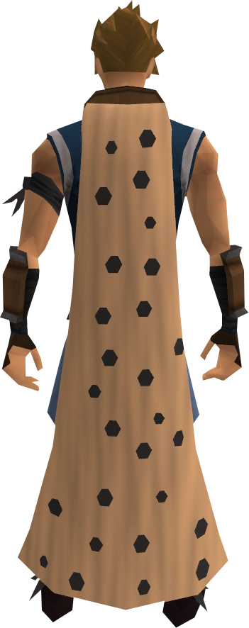 The spottier cape is a reward from the Hunter skill that reduces the weight of its wearer. It requires at least level 66 Hunter to wear. It has more weight reduction than the Spotted cape, reducing the player's weight by 4.5 kg. The Wicked cape reduces your weight by 6 kg, outclassing the spottier cape by 1.5 kg.