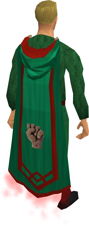 The Strength master cape is the cape awarded for achieving True skill mastery in Strength. Its appearance is different from regular skillcapes. Unlike Dungeoneering, Slayer and Elite skills, the skill cap for Strength is 99; true skill mastery is awarded for achieving a virtual level of 120 (104,273,167 experience) while the stat does not actually go beyond 99. It was also revealed that the new master capes will not have a unique emote. The cape is sold by Sloane (or Yadech Strongarm after While Guthix Sleeps) for 120,000 coins.