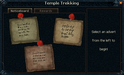 Temple Trekking starts at the town of Burgh de Rott, by the northern gate. Start the minigame by reading the noticeboard nearby.