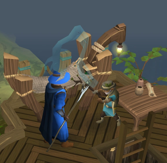 - During the flashback scene, Oaknock's examine text reads "Can he build it? Yes he can!". This is a reference to Bob the Builder, a children's television character and show.