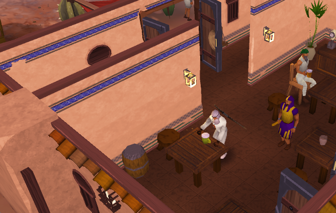 - When talking to the barman about Traitorous Ali, he will mention that he went to the restroom and that he might take a while since nobody had ever seen a toilet in Gielinor.