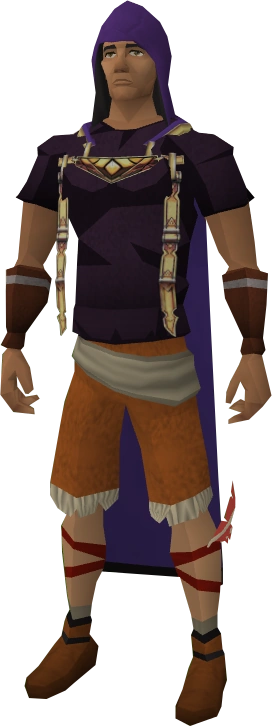 The thieving hood is the skillcape hood associated with having achieved skill mastery in the Thieving skill. Players may buy the hood alongside the Thieving cape from Martin Thwait at the Rogues' Den for 99,000 coins, provided that they have level 99 Thieving, although the hood and the cape may not be purchased separately. The hood's counterpart, the Thieving cape, however, provides moderate defensive stats and additionally has the ability to increase a player's Thieving level from 99 to 100 temporarily. The hood is of a solid purple, regardless of the number of skills in which a player has attained skill mastery. This is in contrast to the cape which receives a black trim on the sides the moment players reach level 99 in a different skill.