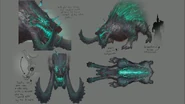 Tuska attacked the homeworld of boar-like creatures at some point. These creatures–now referred to as Airuts–are a proud warrior race, who resort to chaotic, psychological warfare. Many of the Airut joined Tuska due to the strength that she showed. Throughout the years, as the Airut continued to follow Tuska, they became more and more reliant on the symbiotic relationship with the boar god, taking hair dropped by Tuska to form armour and gloves in order to increase their strength. As part of their favour towards psychological warfare, the airut leave the Mark of Tuska stamped on their victims, either as a branding or marks made on the wall.[3] Tuska and the Airut met Skargaroth and Skargaroth followed Tuska through the dimensions to hunt her down.