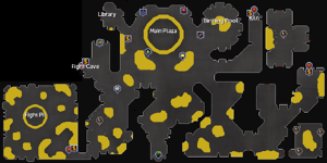 - Banks - The main plaza bank accessed via TzHaar-Hur-Zuh; four banks located at minigame entrances, including one in the Fight Cauldron lobby.