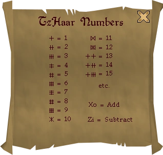 Examples of TzHaar numbers are in the note in the Tzhaar tourist guide.