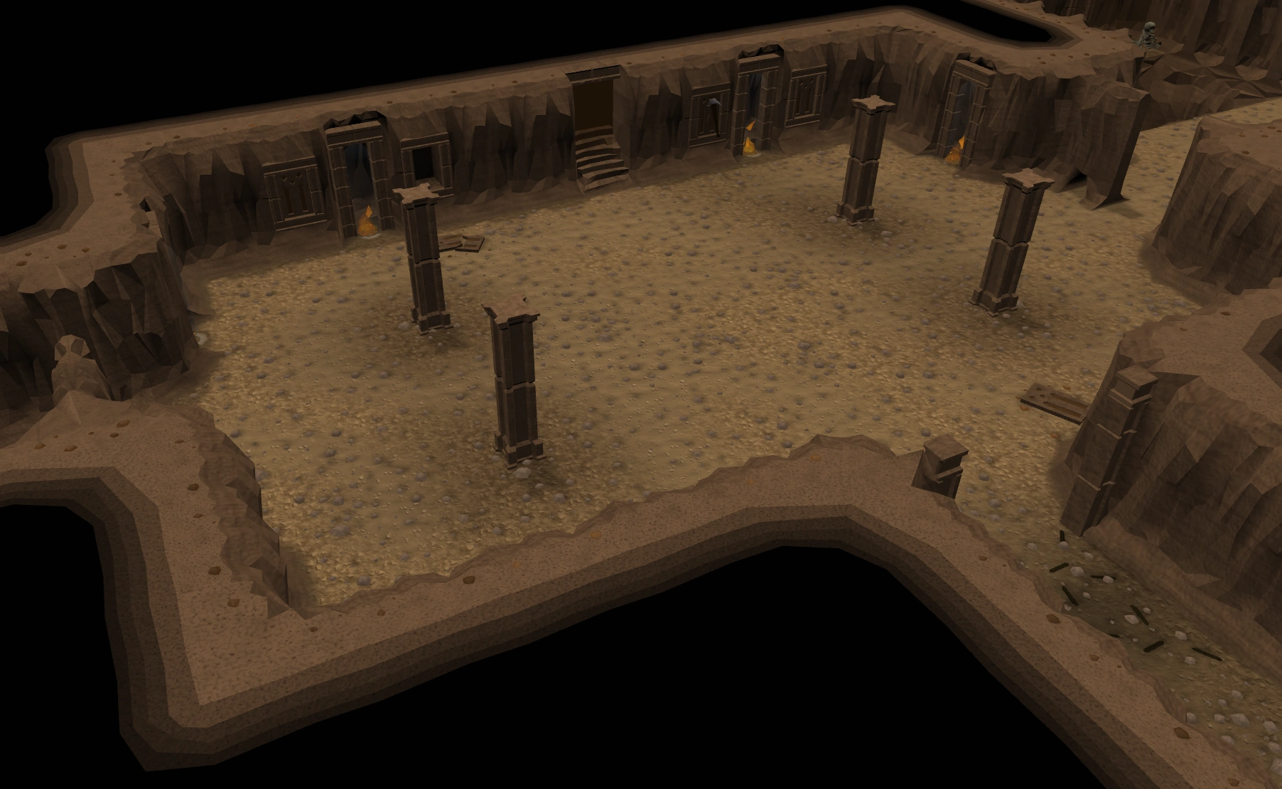 High-level Skeletons infest the region due north of the archaeologists' camp. This region has the entrance to the Tomb of Catolax, which features in the Smoking Kills quest, and the Scabarite Hive dungeon, which features in Dealing with Scabaras. Both can be entered after their quests, but the tomb has little or nothing of interest then.