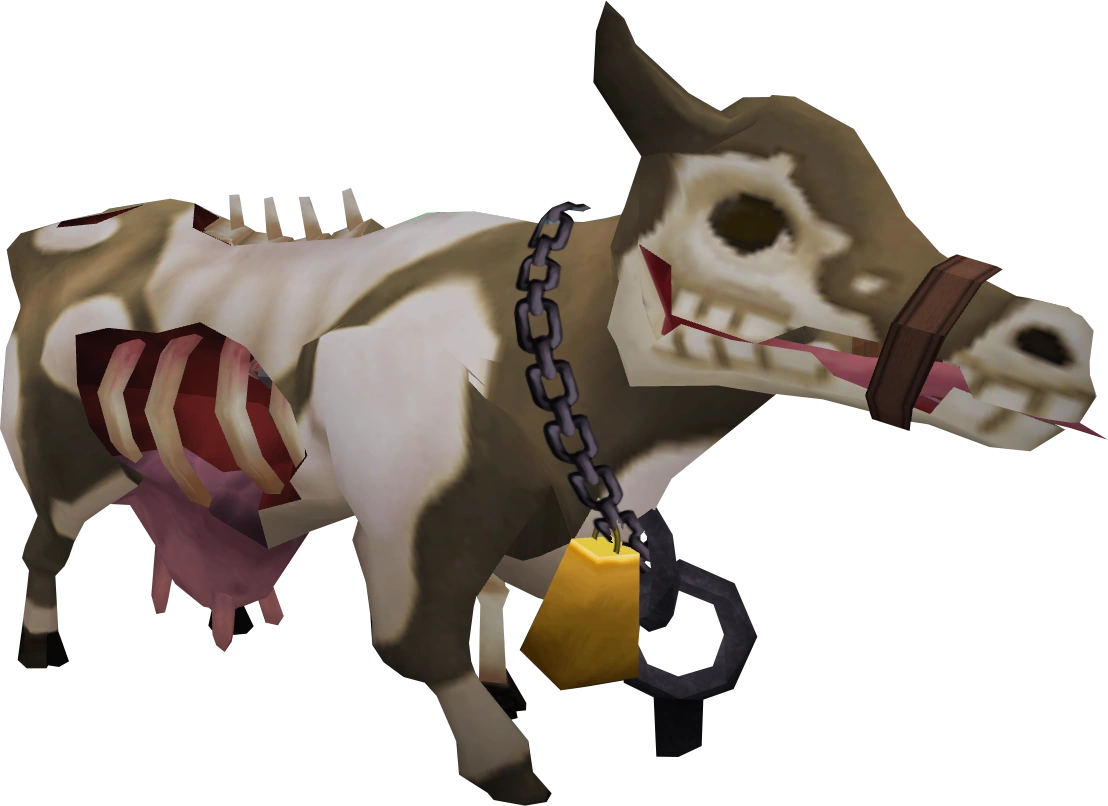 An Undead dairy cow may be found outside the zombie cow pen in the east of New Varrock. It may be milked with a bucket to obtain Curdled milk.