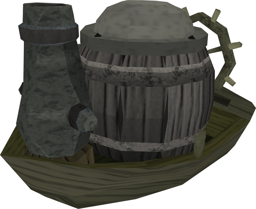 An unoccupied zomboat is an empty zomboat found at the dock on Bloodsplatter Isle during A Clockwork Syringe. During the quest, players must board it in order to chase after the zombie surgeon Mi-Gor and the zombie mechanic Mechanical Murphy.