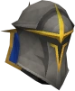 The Warpriest of Saradomin helm is a hybrid head armour that scales with your defence level up to level 75 for members, or level 50 for non-members. It was once obtainable by paying 5,000 Renown from the Battle of Lumbridge to the Saradominist quartermaster. It can now only be obtained as a drop from inside the God Wars Dungeon. At full potential, it has stats equal to a dragon full helm for members, or a mithril full helm for non-members.