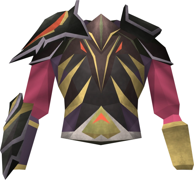 The Warpriest of Zamorak cuirass is a hybrid body armour that scales with your defence level up to level 75 for members, or level 50 for non-members. It was once obtainable by paying 4,000 Renown from the Battle of Lumbridge to the Zamorakian quartermaster. It can now only be obtained as a drop from inside the God Wars Dungeon. At full potential, it has stats identical to a dragon platebody for members, or comparable to a mithril platebody for non-members.