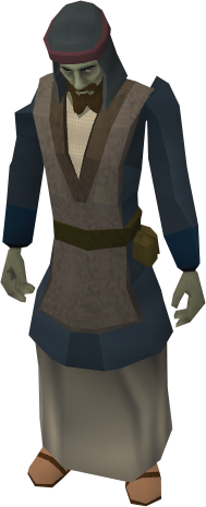 During Dimension of Disaster, his zombie counterpart may be found running a vegetable shop in New Varrock square.