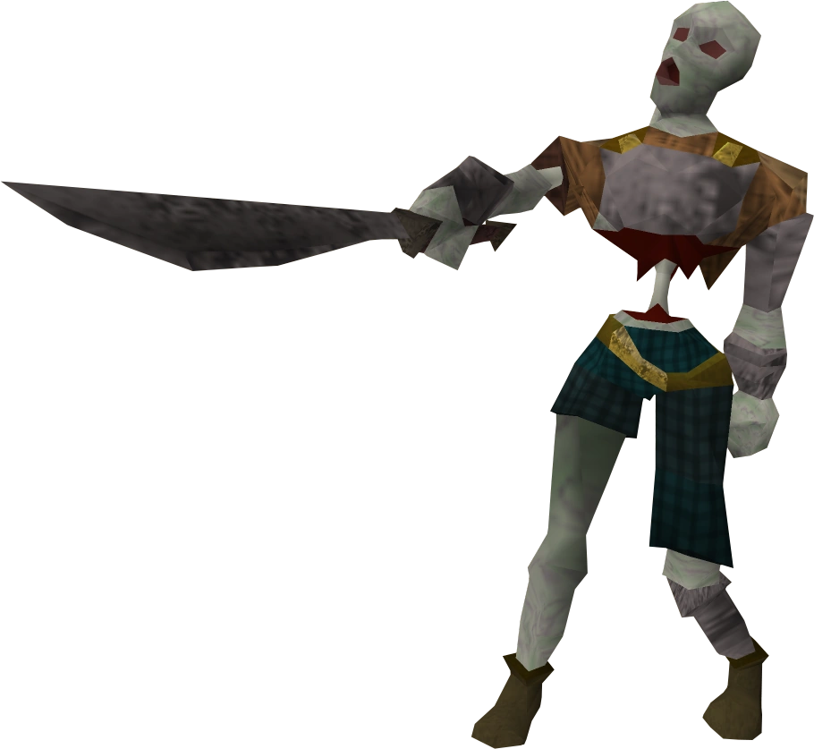 Many types of zombies exist, including armoured zombies, undead ones, zogres, zombie hands, monkey zombies, zombie pirates, zombie swabs and dried zombies. When given a Slayer assignment for zombies, any zombie-class creature may be targeted, including those such as undead chickens and cows.
